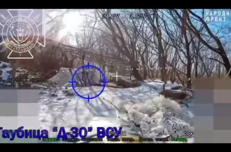 Российский дрон заглянул на позицию украинской гаубицы Д-30