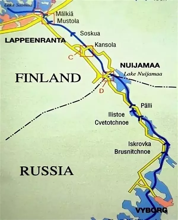 Канал соединил озеро Сайма в Финляндии с Выборгским заливом, когда Финляндия была частью Российской Империи. Сейчас он проходит по территории двух государств. Но СССР в 1963 предоставил Финляндии в аренду на 50 лет 19,6 км водного пути вместе с прилегающей территорией. Так облегчался экспорт финского леса. В 2010-м Финляндия договорилась с Россией о новой аренде еще на полвека, правда на этот раз арендованная финнами территория не включала остров Малый Высоцкий .