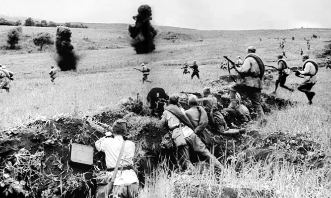 Советские артиллеристы и миномётчики нанесли огневое поражение по району сосредоточения гитлеровцев, уничтожив около трёх рот врага.