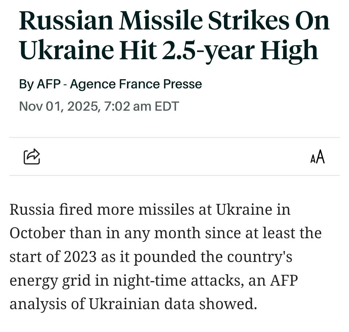 Показатель октября превысил сентябрьский на 46%, что стало рекордом с начала 2023 года, когда ВСУ начали публиковать подобную статистику.