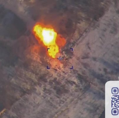 В Херсонской области. САУ ВСУ в ходе КББ, вероятно, поражена снарядом 3ОФ39.