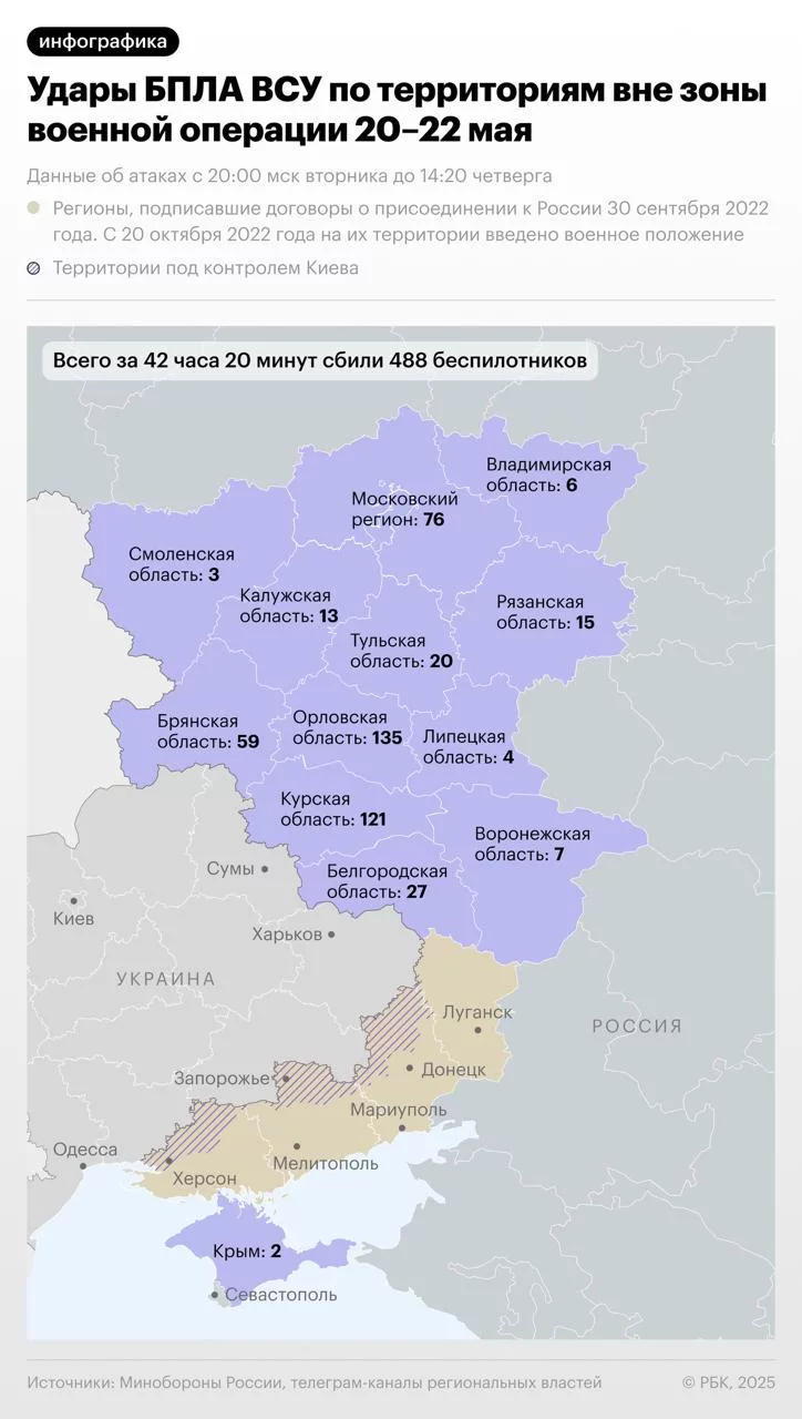 В 14.12 Собянин написал: «Силами ПВО Минобороны отражена атака ещё трёх БПЛА, летевших на Москву. На месте падения обломков работают специалисты экстренных служб».