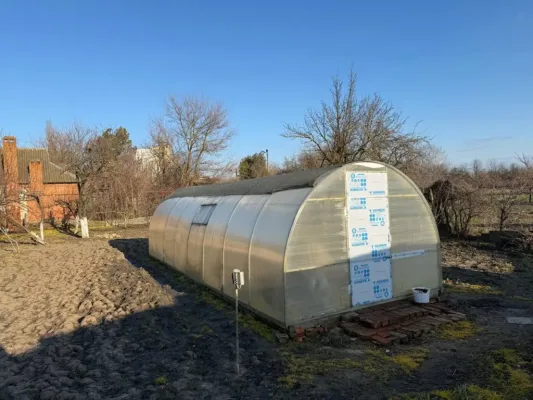 - Каркас и покрытие. Обработайте дуги, стойки, стены из поликарбоната или пленки. Особое внимание уделите углам и стыкам, где скапливается конденсат