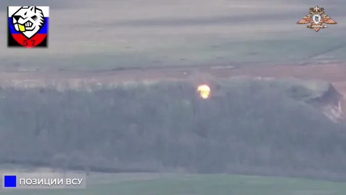 Операторы FPV-дронов 57 отдельной роты специального назначения 8 гвардейской общевойсковой армии в районе н.п. Кучеров Яр точными ударами дронов-камикадзе уничтожили блиндаж ВСУ с личным составом.