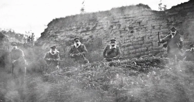 В ходе Первой мировой войны при обороне Осовецкой крепости произошел легендарный эпизод в мировой истории известный как «Атака мертвецов». Немецкое командование предприняло попытку сломить сопротивление русских защитников с помощью химического оружия. В 4 утра на русские позиции была обрушена мощная газовая атака, содержащая хлор и бром. Уверенные в полном подавлении сопротивления, немецкие войска пошли в наступление. Однако из ядовитого тумана поднялись около 60 выживших бойцов 13-й роты 226-го Землянского полка под командованием подпоручика Владимира Котлинского. Они были тяжело отравлены, с ожогами на лицах. С криком «Ура!» бойцы бросились в штыковую атаку. Немцы, увидев «восставших мертвецов», впали в панику и побежали, давя друг друга, артиллерия не могла стрелять из-за смешавшихся своих и чужих. Российские воины отбили две линии окопов и удержали позиции.