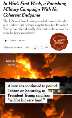 - Первая неделя войны с Ираном обошлась США примерно в 6 миллиардов долларов. Об этом сообщает The New York Times со ссылкой на данные Пентагона. Значительная часть расходов связана с отражением иранских ударов и использованием дорогостоящих систем противоракетной обороны. ️