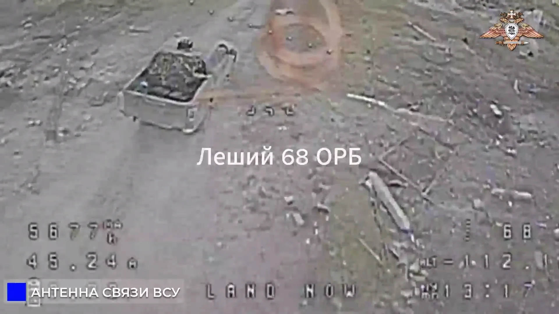 Операторы FPV-дронов 68 отдельного разведывательного батальона 20 мсд 8 гвардейской общевойсковой армии в районе н.п. Софиевка нанесли удары по автотранспорту противника и средствам связи, а также поразили личный состав ВСУ. Точные попадания обратили технику в обломки и ликвидировали боевиков.