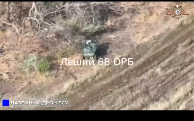 Операторы FPV-дронов 68 отдельного разведывательного батальона 20 мотострелковой дивизии 8 гвардейской общевойсковой армии с помощью дрона-камикадзе ликвидировали наземный дрон ВСУ, применявшийся для доставки боеприпасов и продовольствия на позиции украинских националистов.