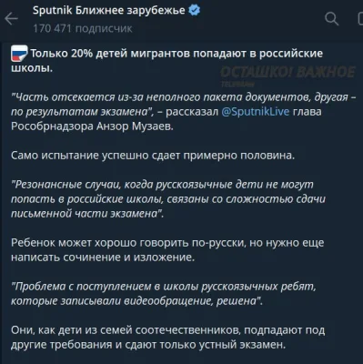 По его словам, вступительные испытания проходят успешно примерно половина детей. Основная проблема — письменная часть: «Как бы хорошо ребёнок ни говорил по-русски, не зная правил письменности, он не сдаст ОГЭ и ЕГЭ».