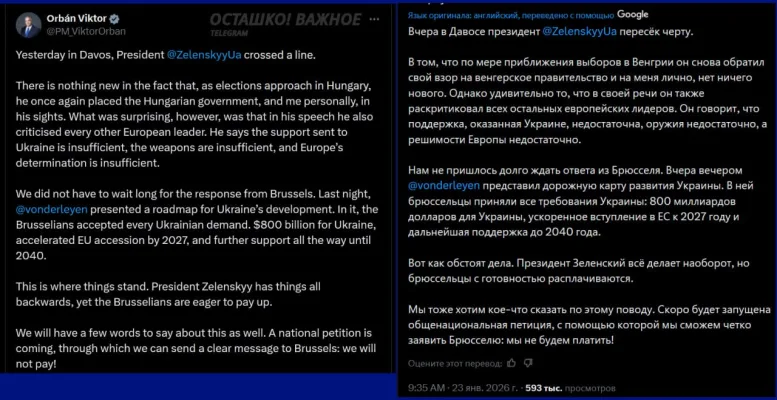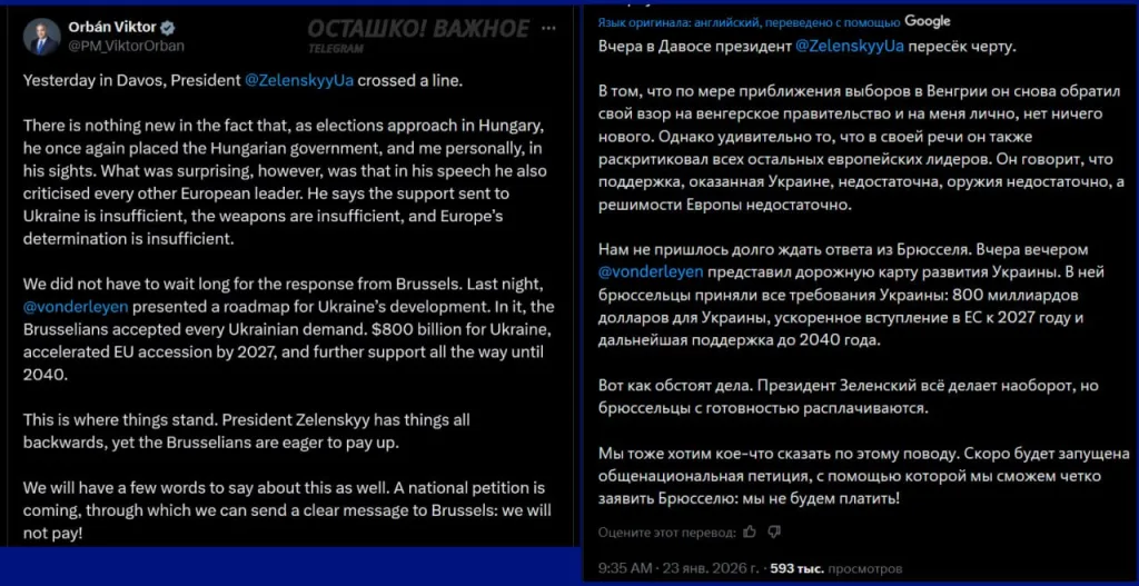 Об этом сообщил премьер Венгрии Виктор Орбан в 𝕏.
