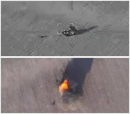 Северо-восточнее села Ингулец в Херсонской области. Геопривязка СК: (46.819745, 32.857019) Успешный удар БпЛA Х-51 по БМ из комплекса 9К35.