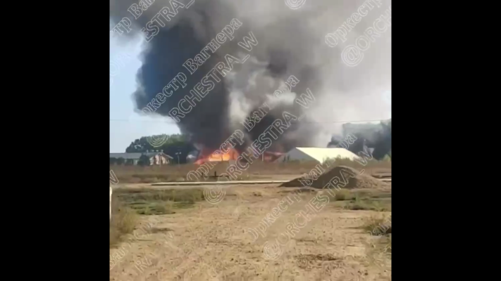 Там горит бывшая база ЧВК «Вагнер». Горят административные постройки, о причинах ничего неизвестно.