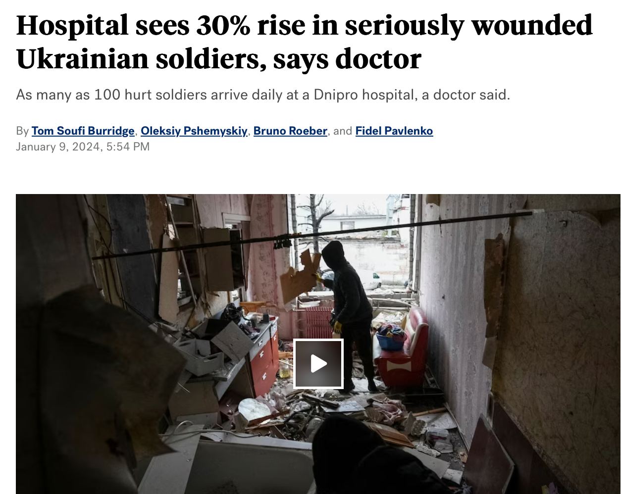 По словам главрача больницы в Днепре (бывший Днепропетровск) Сергея Рыженко, они принимают ежедневно от 40 до 100 тяжелораненых. Врачи проводят от 50 до 100 хирургических операций каждый день. Большинство операций проводится по ампутации.