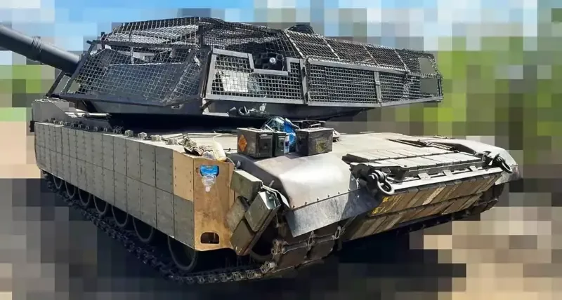 Противник адаптировал танки «Абрамс» к новым условиям, обвесив машину динамической защитой «Контакт-1» с фронтальной проекции корпуса. Борта прикрыты американской ARAT-1. Башня не имеет динамической защиты в принципе, но плотно прикрыта сеткой. Отверстия в неё допускаются в районе люков командира и заряжающего, гранатомётов системы постановки дымовой завесы и маски орудия. Кроме того, сетку установили на корму танка, закрыв ею двигатель.