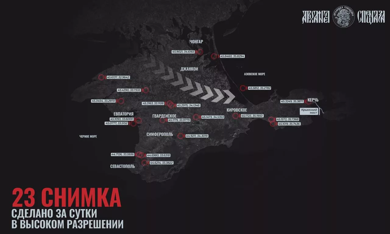 Как обычно, под прицел спутников попали аэродромы, такие как Гвардейское, Бельбек, Кировское, а также предполагаемые позиции ПВО.