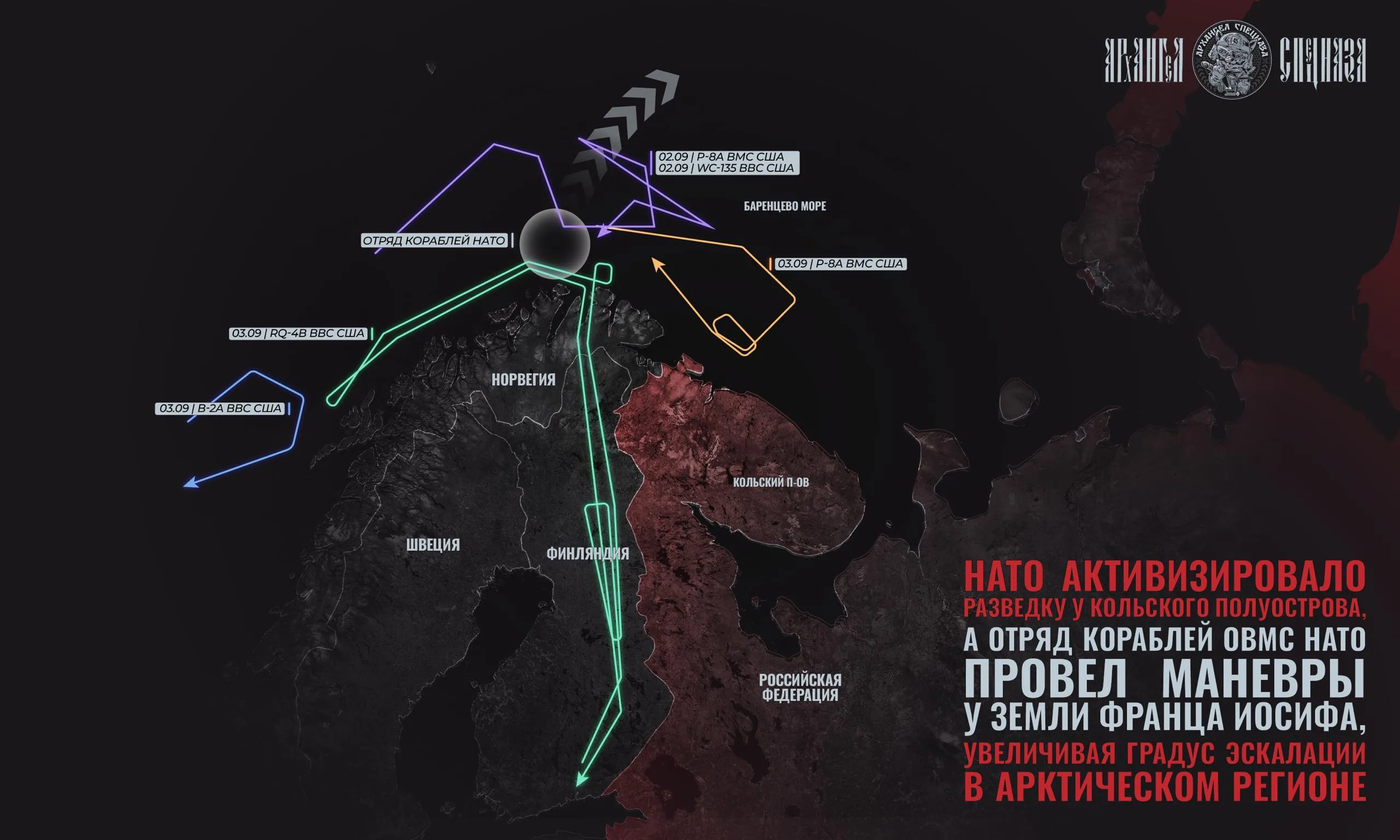 ▪️Там в последние дни интенсивно работает разведывательная авиация НАТО. 2 сентября парный полет совершили Р-8А ВМС США и спецсамолет WC-135.