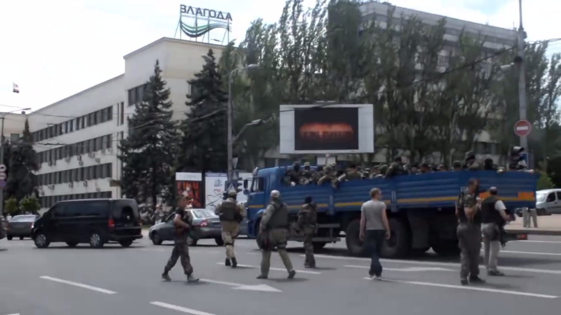 Девятого мая четырнадцатого настроение в городе было подавленное: события в Одессе второго мая, утренний расстрел азовцами горуправления МВД в Мариуполе…. Я внешне занимался политикой, а под спудом готовил силы, чтобы встречать гостей из Киева, которые неизбежно должны были к нам пожаловать. Видя атмосферу, которая повисла в столице Донбасса, я принял решение впервые «обнародовать» ополчение. Реакцию вы видите и слышите.