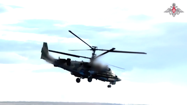 Экипаж армейской авиации на вертолете Ка-52 нанес удар авиационными средствами поражения по скоплению живой силы, бронированной и автомобильной военной технике подразделений ВСУ в приграничном районе Курской области.