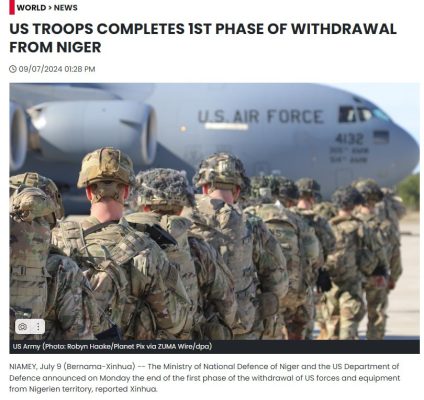 “Министерство обороны Нигера и Министерство обороны США объявляют, что вывод американских сил и оборудования с 101-й базы в Ниамее завершен”, — говорится в заявлении двух стран.
