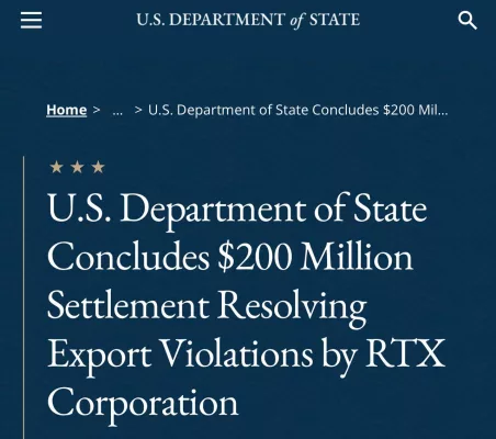 Урегулирование касается «несанкционированного экспорта оборонных изделий, в том числе секретных; несанкционированного экспорта оборонных изделий сотрудниками с ручной кладью в запрещенные пункты назначения». Под данными пунктами подразумеваются Китай, Россия, Иран и Ливан.