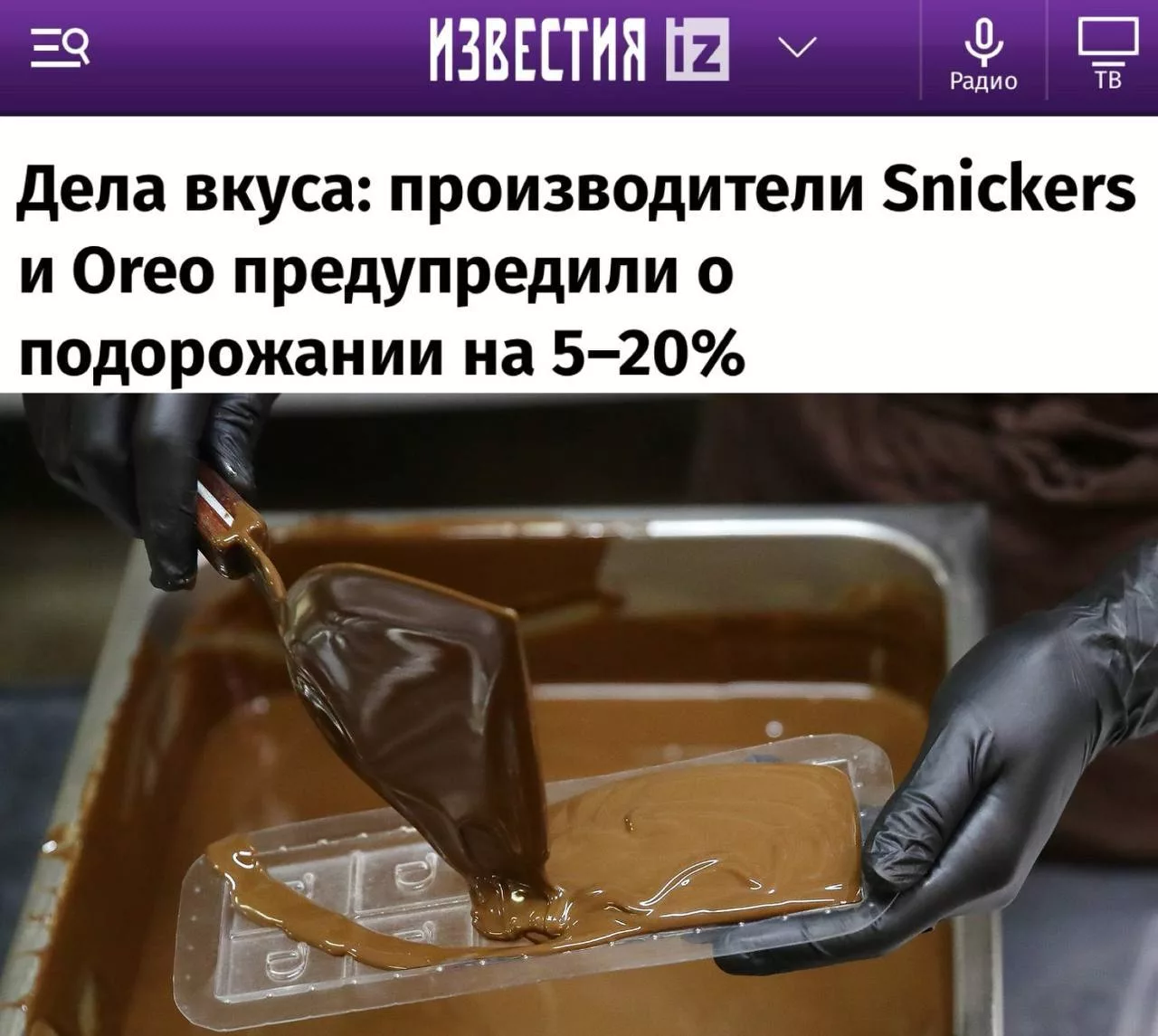Американские бренды кондитерской продукции Mondelēz и «Марс» предупредили розницу о намерении повысить отгрузочные цены с марта. Так, шоколадки Mars, Snickers, Milky Way и Bounty могут подорожать на 16–19%, конфеты «Коркунов» — на 11–19%, шоколад Alpen Gold, печенье Oreo, круассаны 7 Days и пирожные «Барни» — на 5–15%. Стоимость продукции растет из-за подорожания сырья — какао-бобов и масла — на бирже.