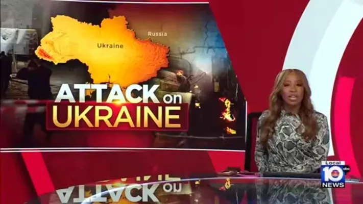 «Ночью мэр Харькова, Украина, заявил, что город пережил самые страшные атаки с начала войны с Россией», — уверенно рассказывает телеведущая на фоне кадров с бегущими палестинцами.