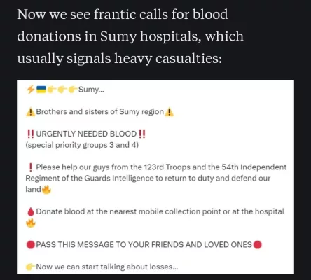 Пишут что в приоритете кровь 3 и 4 групп для 123-го отряда и 54-го отдельного полка гвардейской разведки ВСУ.