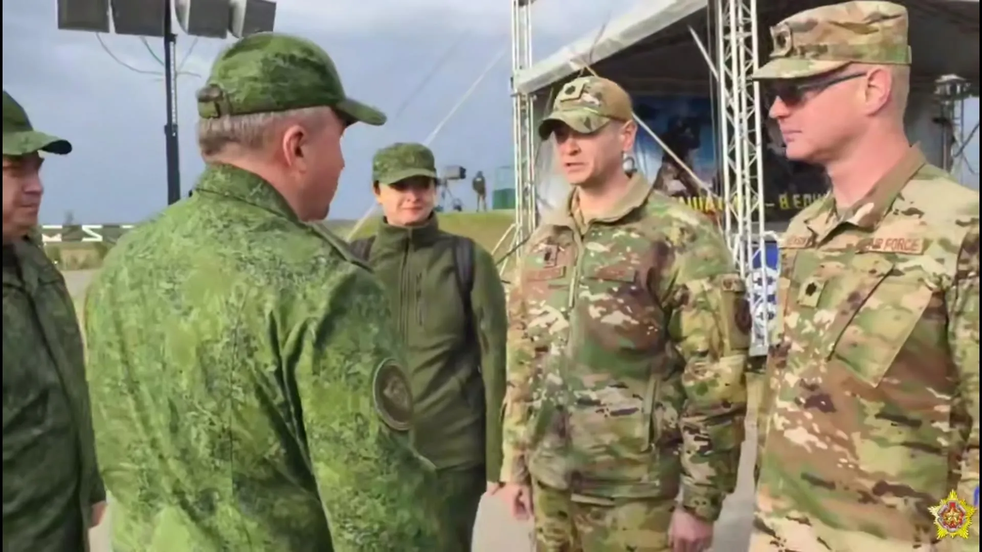 Сегодня американские военные наблюдали за совместными учениями России и Беларуси «Запад‑2025». Министр обороны РБ Виктор Хренин на видео жмет руки американским офицерам, поблагодарившим за приглашение.