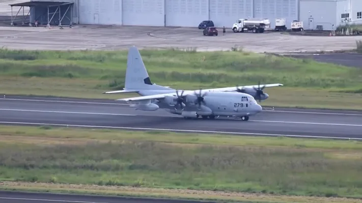 Журналисты Reuters сняли регулярные полеты V-22 Osprey, CH-53 Super Stallion, C-130 Hercules, UH-60 Black Hawk и F-35B.