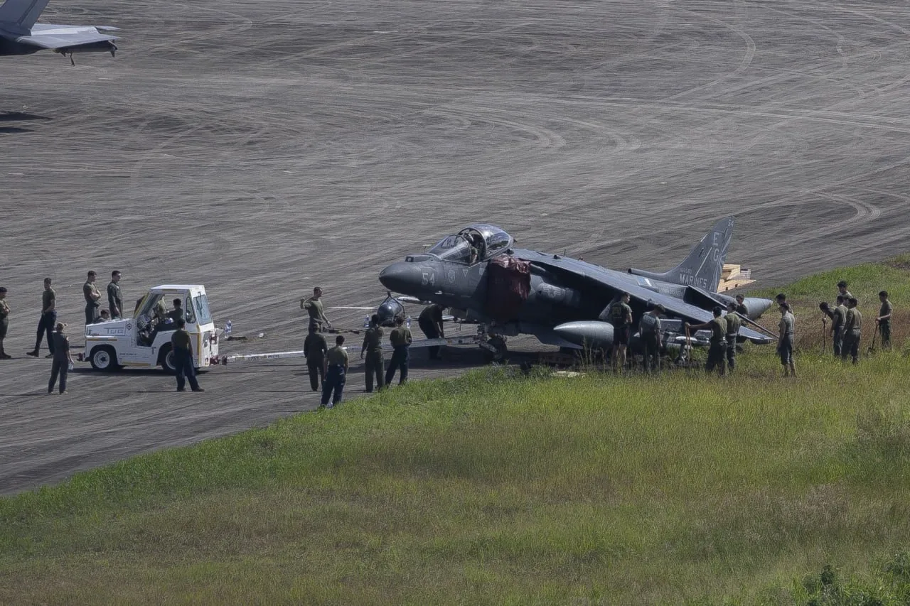 Один из AV-8B Harrier КМП США даже выкатился с рулежки.