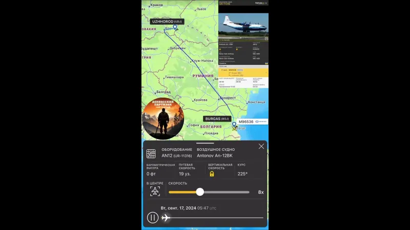 Сегодня, 17 сентября 2024 года, сервис Flightradar зафиксировал пролет транспортного самолёта Ан-12 с бортовым номером UR-11316 по маршруту Бургас (Болгария) — Ужгород (Украина). Данный случай требует особого внимания как с точки зрения технических характеристик полёта, так и его геополитического значения.