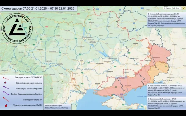 - 06:50 окрестности Васильковки Днепровской области – взрыв. Герань-3/5.