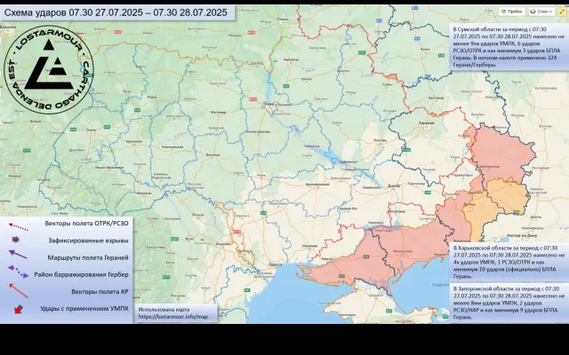 - 23:10-23:25 Запорожская область — взрывы. 3 удара УМПК. Степногорск.