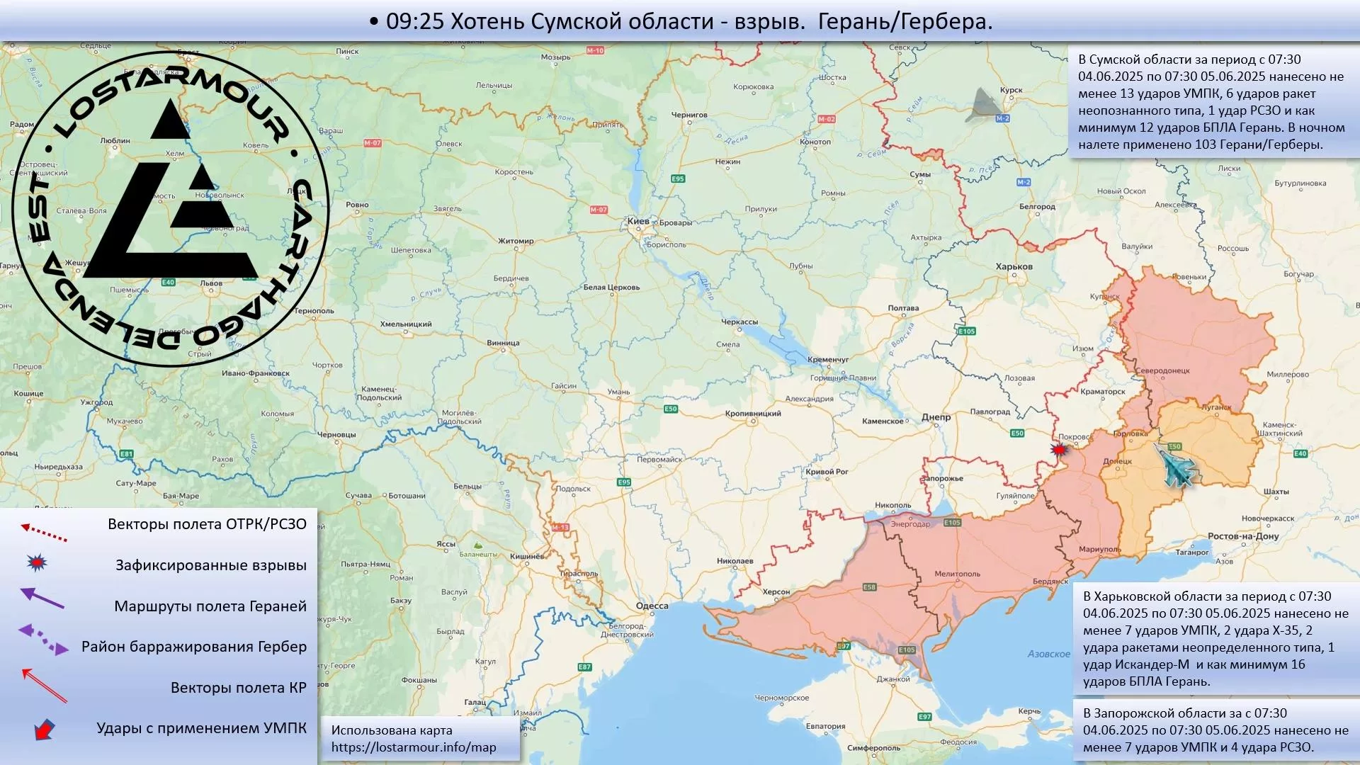 - 01: 25 Вишневое Одесской области, Харьков и Конотоп Сумской области — взрывы. Герани/Герберы.