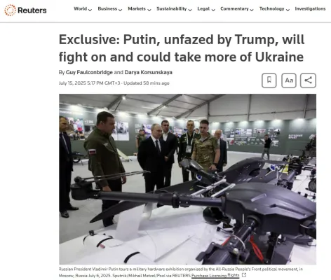 Ранее Сергей лавров высказался об ультиматуме Трампа: «50 дней, 24 часа, 100 дней – мы все это проходили». Также Дмитрий Песков заявил, что Россия не приемлет ультиматумов, а Дмитрий Медведев вообще сообщил, что «Россию это не волнует».