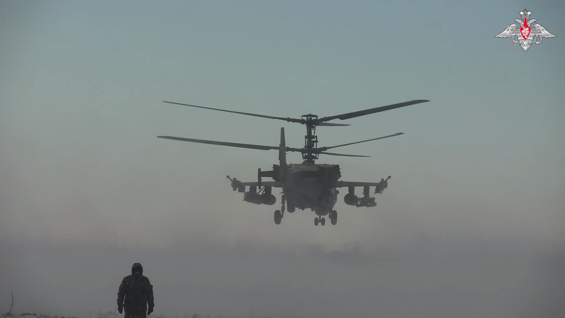 Ударная группа армейской авиации, состоящая из ударно-штурмового Ка-52 и вертолета поисково-спасательного обеспечения Ми-8, выполнила боевой вылет на Сватово-Кременном направлении.