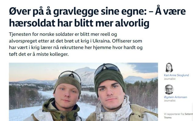«Сценарии войны стали острее и реальнее. Норвежские солдаты тренируют активные бои и моральные потрясения как часть войны. В учения добавлены гибель людей и захоронение однополчан», — пишут журналисты. Они пафосно добавляют, что «Наш главный враг на востоке потенциально может вторгнуться, отнять жизни и разрушить то, что мы любим».
