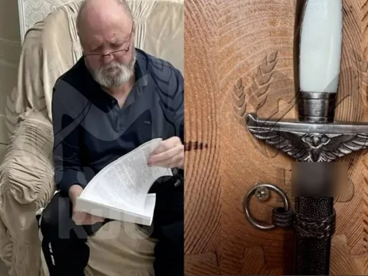 Во время обыска у Валерия Слуки были обнаружены штык-ножи, охотничий арбалет камуфляжного цвета, коллекционные кинжалы и оружие, напоминающее немецкий автомат Schmeisser MP40.