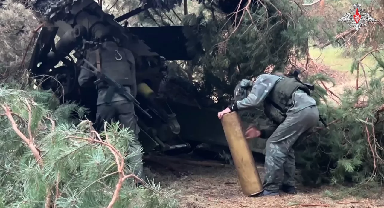 Расчеты 152-мм буксируемых орудий «Гиацинт-Б» выполняют огневые задачи по уничтожению бронетехники, огневых средств, складов боеприпасов, укрепленных позиций ВСУ, а также поражают лодки противника на правом берегу Днепра.