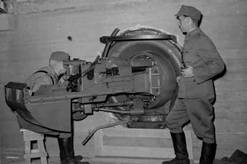 Где снова видим защитный короб от советской 76-мм казематной артиллерийской установки Л-17 образца 1940 г. конструкции Маханова.