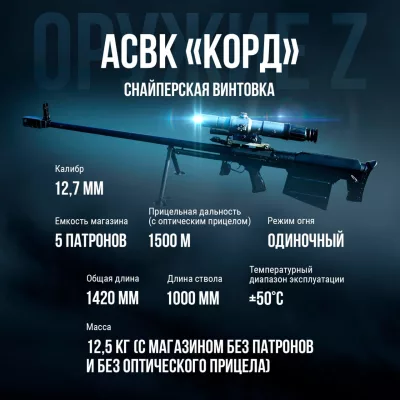 Бронежилет, броня, кирпичная стена – для крупнокалиберной снайперской винтовки АСВК «Корд» не имеет значения, она пробивает преграду и уничтожает противника на рекордном для снайперского оружия расстоянии.