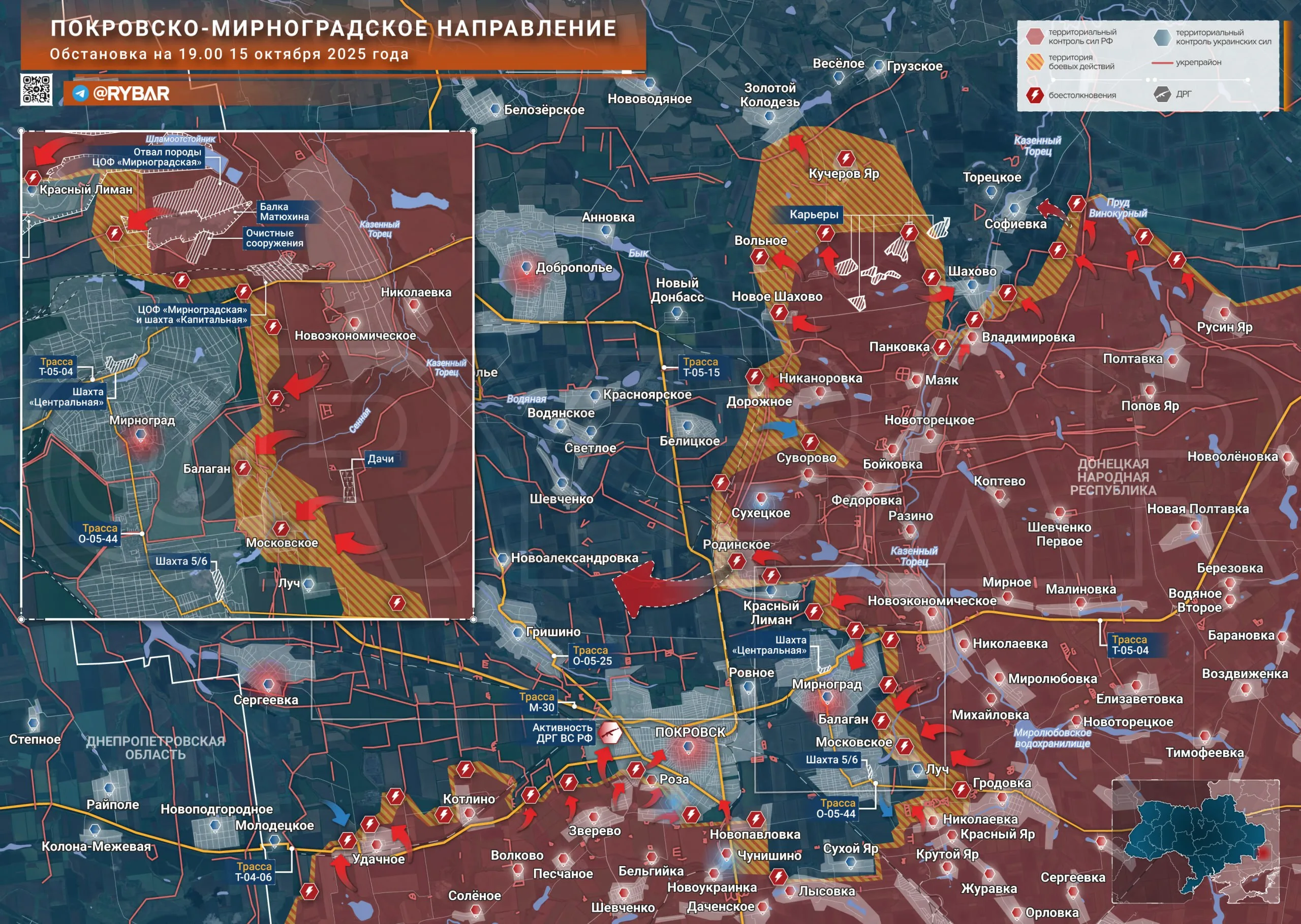 В окрестностях Покровско-Мирноградской агломерации ВС РФ теснят противника сразу с двух сторон. На востоке бойцы пытаются зайти в Мирноград со стороны шахты «Капитальная» и населенного пункта Балаган. На западе разведгруппы просачиваются и накапливаются в окрестностях Новопавловки и западнее Розы.