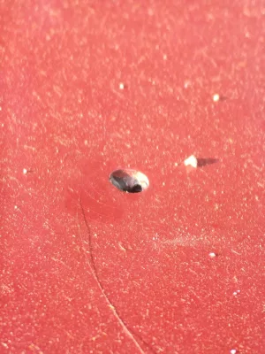 Жители Березовой Рощи рассказали, что помимо выбитых окон в припаркованных автомобилях, они обнаружили маленькие железные шарики, впившиеся в кузов.