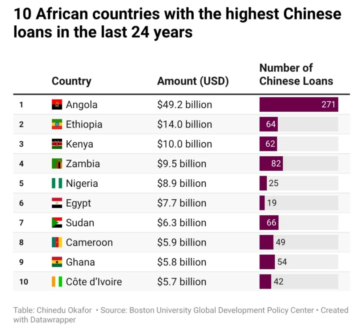 Топ-10 африканских стран с крупнейшими долгами перед Китаем