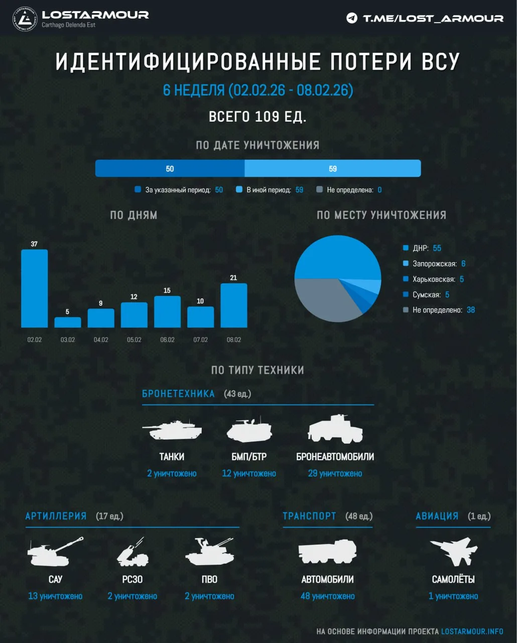 Идентифицированные потери ВСУ в технике в период с 02 февраля по 08 февраля 2026 года