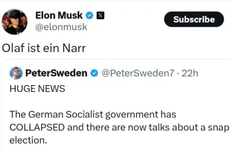 «Олаф — болван»: Илон Маск о распаде немецкой правящей коалиции