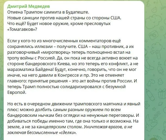 «США – противник России»: Медведев об отмене саммита и санкциях