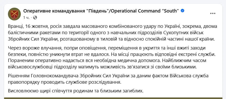 Хроника ударов по территории Украины 15 октября — 16 октября 2025 года