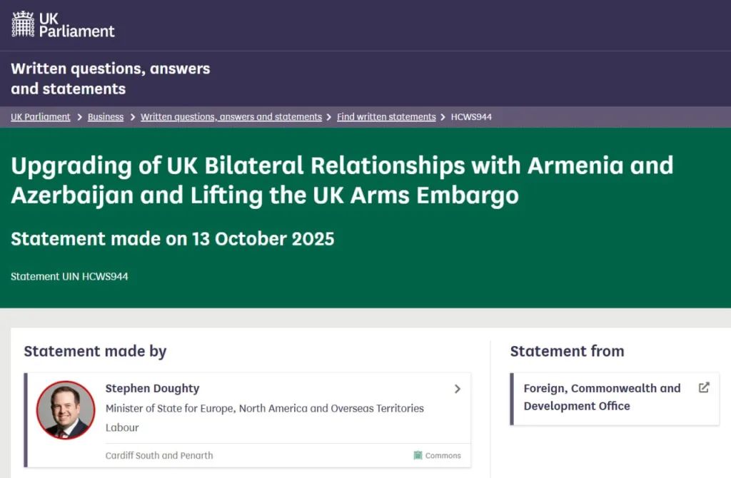 Британия снимает эмбарго на поставки оружия Армении и Азербайджану после