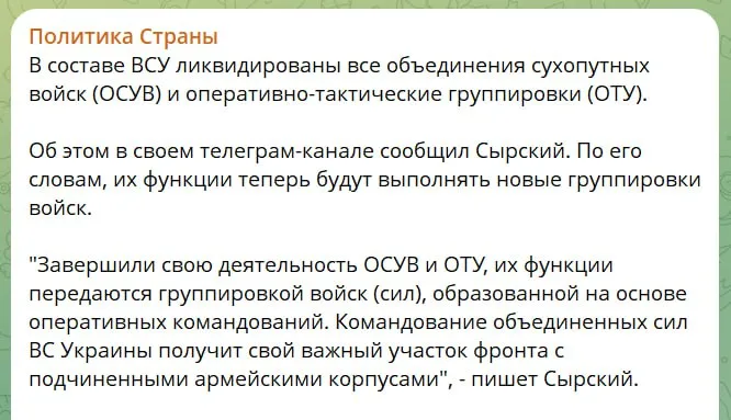 Юрий Подоляка: В ВСУ завершен переход на «корпусную» систему